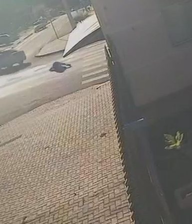 No vídeo é possível notar que o carro, um Corsa Classic, avança o sinal de PARE, ocasionando a batida com um motociclista, que foi arremessado com...