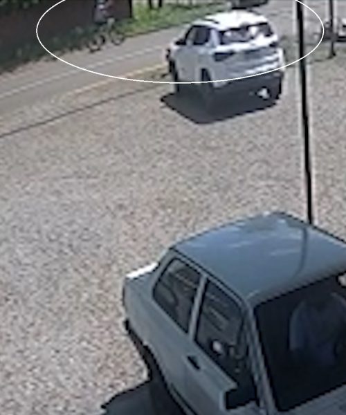 Câmera de segurança registra acidente entre ciclista e Jeep no Bairro Neva, em Cascavel