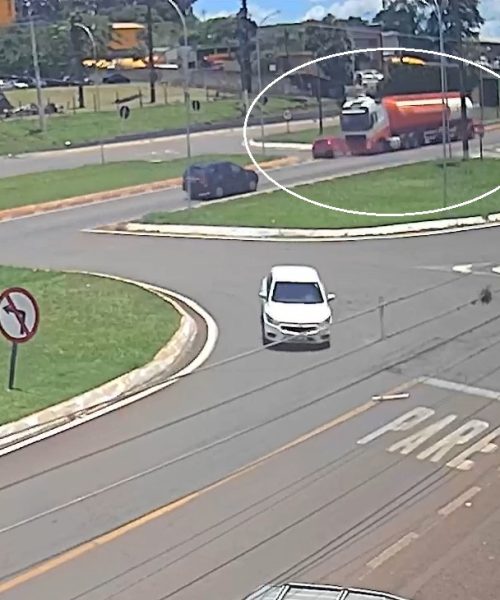 As imagens mostram o momento em que o Gol tenta atravessar o trevo no sentido do bairro Cascavel Velho ao Pacaembu. Durante a manobra, o veículo...