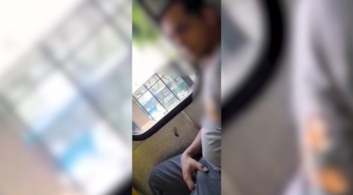 Tarado mostra o pênis e passa a mão em vítima dentro do ônibus do transporte coletivo Disfarçadamente ela filma o homem que estava acariciando o próprio pênis...