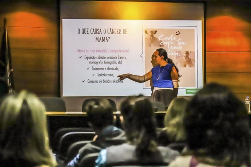 No mês dedicado à conscientização sobre câncer de mama, trabalhadoras da Urbanização de Curitiba (Urbs) assistiram, nesta quarta-feira (25/10), a uma palestra com a temática do Outubro Rosa. O evento foi realizado na sede da Urbs, no Jardim Botânico, em parceria com a Unimed.