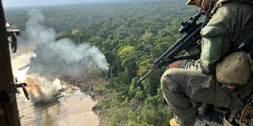 A Operação Fronteira de Ouro foi deflagrada entre a sexta-feira (1º) e o domingo (3) no Amazonas, com o objetivo de “prevenir e reprimir a extração ilegal de minério de ouro” no leito dos rios localizados próximos à região fronteiriça – mais especificamente nos municípios amazonenses do Japurá e Santo Antônio do Içá.