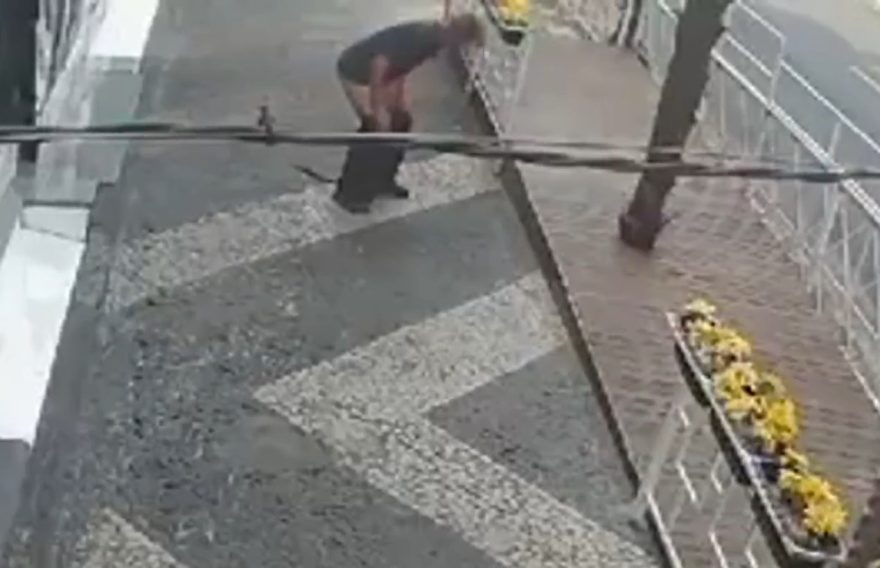Nojento! Vídeo mostra homem abaixando as calças e cagando no meio da calçada