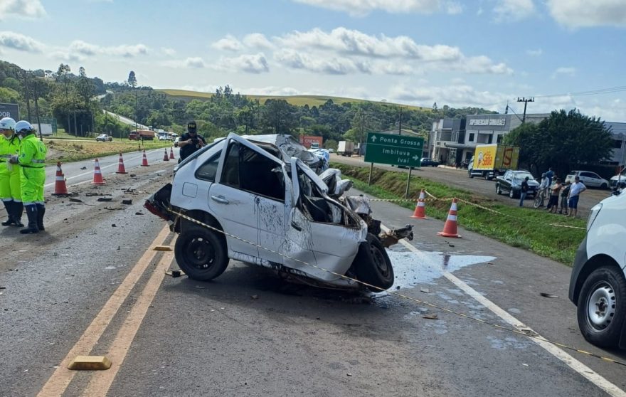 O condutor do carro ficou preso às ferragens e morreu no local. O corpo dele foi recolhido ao Instituto Médico Legal (IML) de Ponta Grossa.