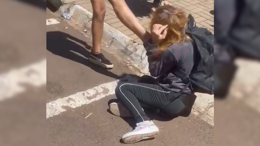 Nas imagens, é possível ver a estudante morena puxando a estudante loira pelos cabelos e desferindo vários socos. Mesmo quando a jovem loira cai ao chão,...