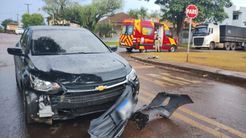 Um jovem de 19 anos ficou ferido em um acidente de trânsito na tarde de domingo (16), na Rua Matelândia, no Bairro Pacaembu, em Cascavel. O jovem era o condutor de uma motocicleta que se envolveu em uma colisão com um veículo Onix no cruzamento da via.