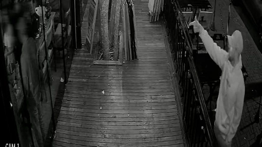 Nas imagens, é possível ver o momento em que o homem que depois efetuaria os disparos chama a vítima para ir até o lado de fora....