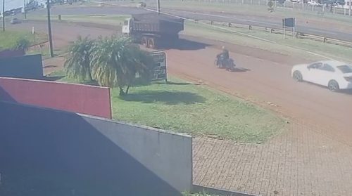 No vídeo é possível notar que a moto realizava uma ultrapassagem quando atingiu o rodado do caminhão, que exatamente naquele momento fazia uma conversão para acessar...