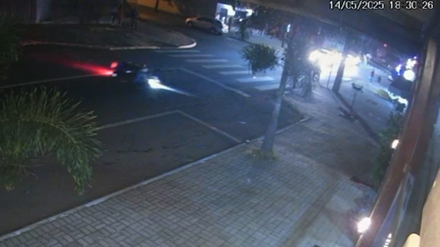 Uma câmera de segurança flagrou o momento exato em que uma criança foi vítima de atropelamento por moto no Bairro Cascavel Velho.