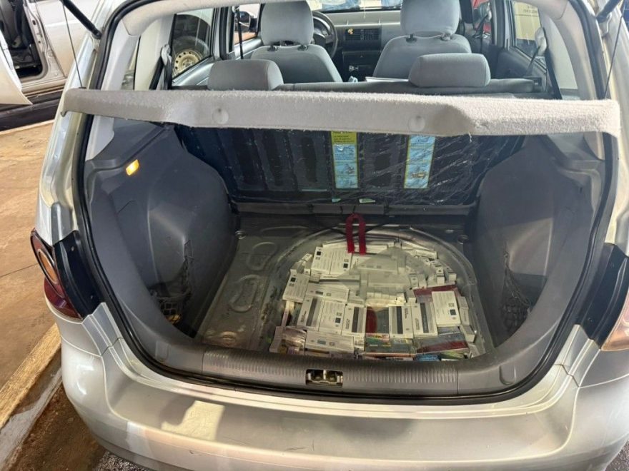 Os produtos estavam ocultos no compartimento destinado ao estepe de um veículo SpaceFox com placas brasileiras. O automóvel era conduzido por uma mulher brasileira, maior de idade, estudante de medicina no Paraguai.