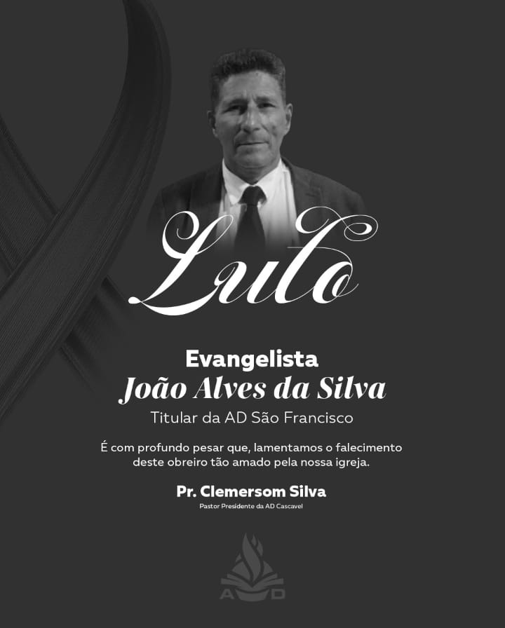 Na noite desta quarta-feira (4) a UMADCVEL – União da Mocidade das Assembleias de Deus de Cascavel emitiu uma nota de pesar pelo falecimento de João Alves da Silva, 61 anos.