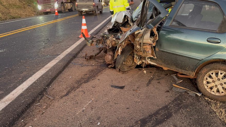 Homem morre e carro fica destruído em grave acidente na PR-483 em Francisco Beltrão