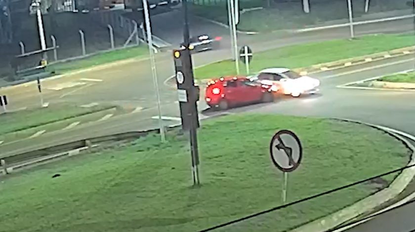 No vídeo é possível ver que um dos veículos seguia pela rodovia, sentido ao Trevo Cataratas, enquanto o outro fazia a travessia....