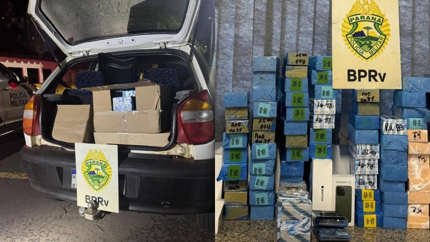 No início da manhã desta terça-feira (12), a equipe volante da 3ª Companhia do Batalhão de Polícia Rodoviária realizou a apreensão de um veículo transportando grande quantidade de eletrônicos e celulares sem documentação fiscal, configurando descaminho.