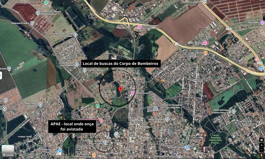 Veja local onde Bombeiros realizam buscas pela onça em Cascavel