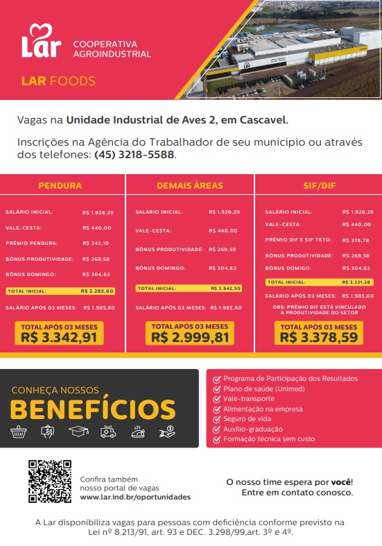 A Cooperativa Lar está com várias vagas abertas para Auxiliar de Produção, além de oportunidades específicas, também há vagas disponíveis para Pessoas com Deficiência (PCDs).