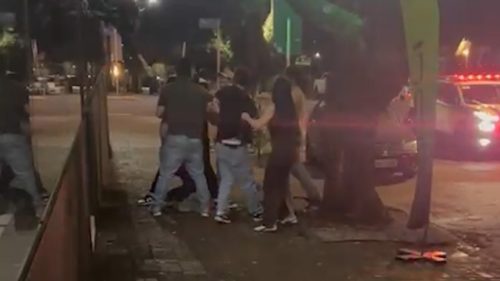 O vídeo, que mais parece cena de filme pastelão, mostra oito pessoas discutindo entre empurrões e gestos exagerados. Em certo momento, um dos envolvidos chega a...
