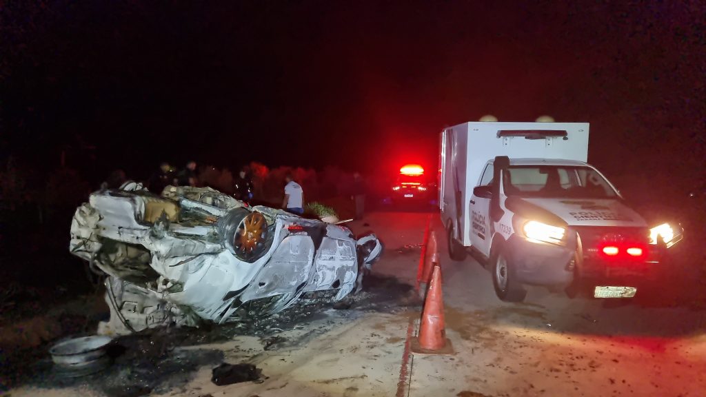 Homem morre após carro capotar diversas vezes e pegar fogo na BR-163 em Cascavel