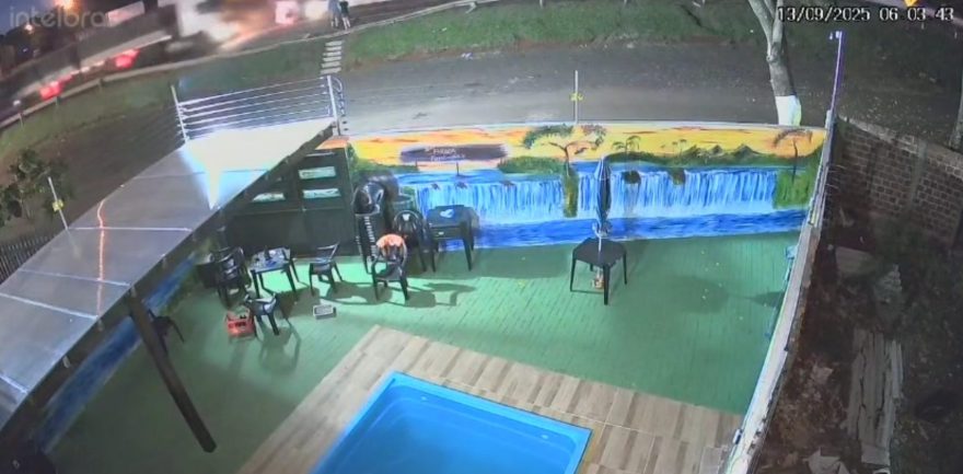 Nas imagens da câmera de segurança é possível ver o momento em que a condutora do automóvel bateu na mureta que divide as vias e capotou por mais de duas vezes.