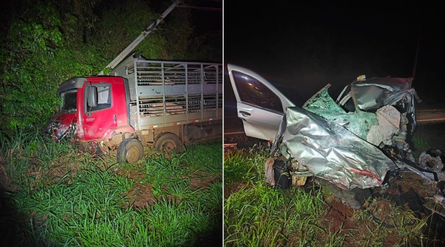Um grave acidente foi registrado na noite de ontem, domingo (12), por volta das 23h, na rodovia PR-239, no quilômetro 631, trecho entre a entrada da PR-182 e Vila Nova, no município de Toledo. A colisão frontal envolveu um automóvel Renault/Sandero, emplacado em Toledo/PR, e um caminhão VW/17.280 CRM 4×2, emplacado em Cascavel/PR.