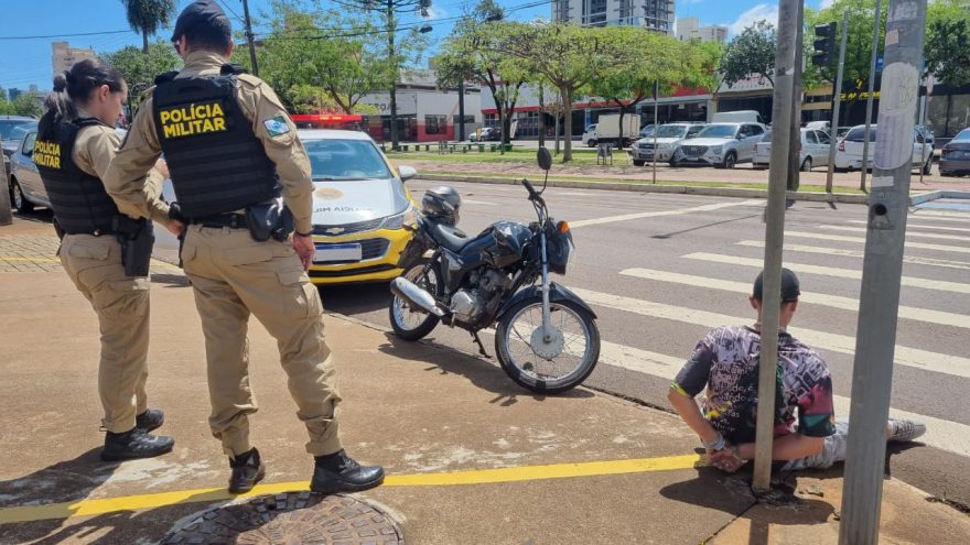 Com moto furtada e porção de maconha, homem é preso na Avenida Brasil