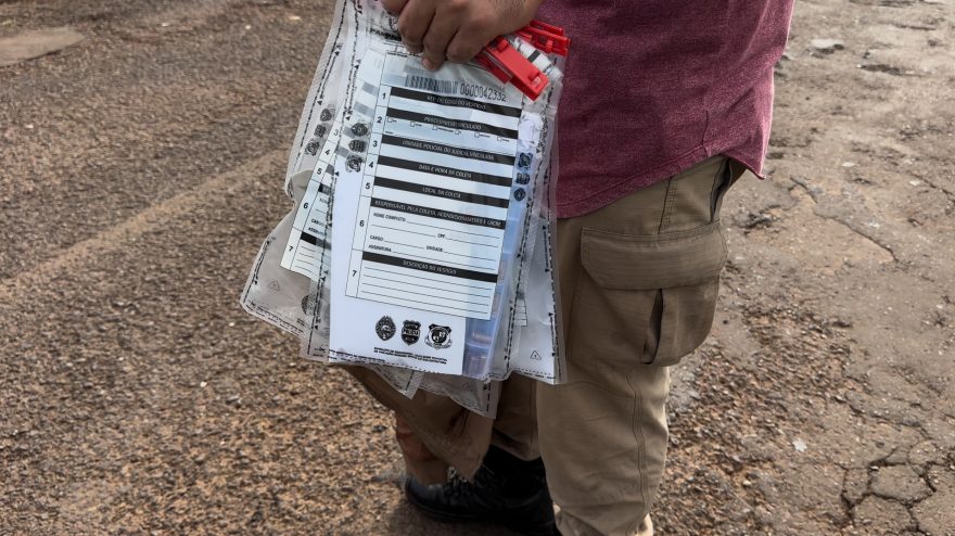 No local, os peritos apreenderam duas armas de fogo — uma pistola e um revólver —, além de munições.