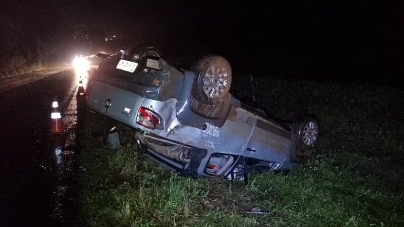 Fiat Strada capota na BR-163, entre Cascavel e Toledo