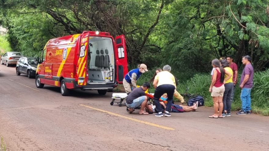 Um ciclista precisou do atendimento do Corpo de Bombeiros na tarde deste sábado (15) após se envolver em um acidente de trânsito.