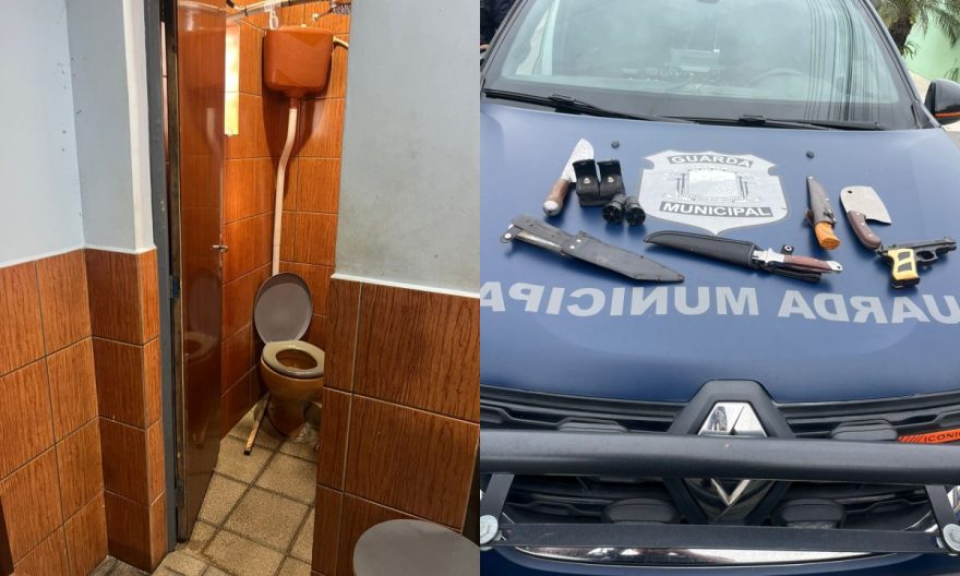 Durante a ação, diversas facas e um simulacro de arma de fogo foram apreendidos pelos agentes.