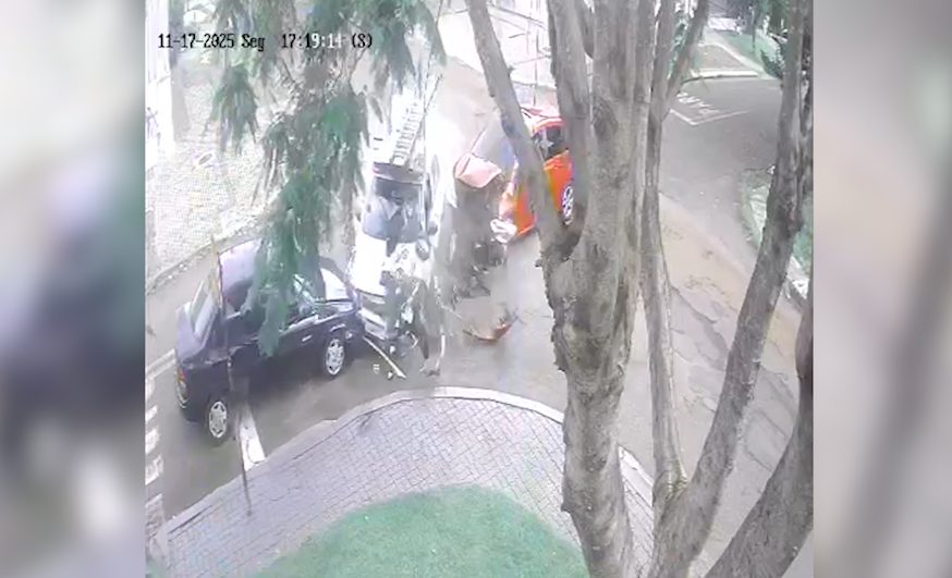Cacetada! Câmera flagra batida envolvendo três veículos em Cascavel