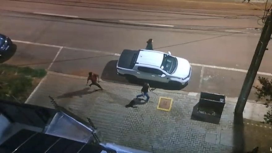Em imagens de celular, gravadas na noite de sábado (29), é possível ver as atitudes provocativas dos sem-teto (veja o vídeo).