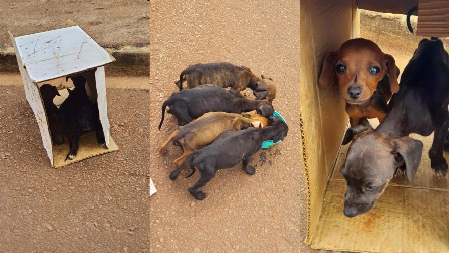 Filhotes desnutridos são abandonados em caixa no meio da rua no bairro Tarumã em Cascavel