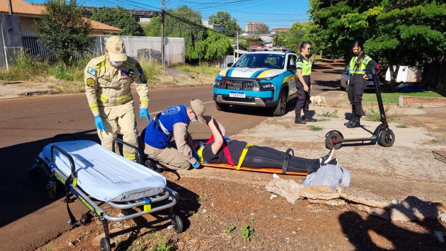 Uma mulher de 26 anos ficou ferida após um acidente envolvendo um patinete na manhã desta quinta-feira (4), no cruzamento da Rua Mawes com a Rua Aimorés, no bairro Santo Onofre, em Cascavel.