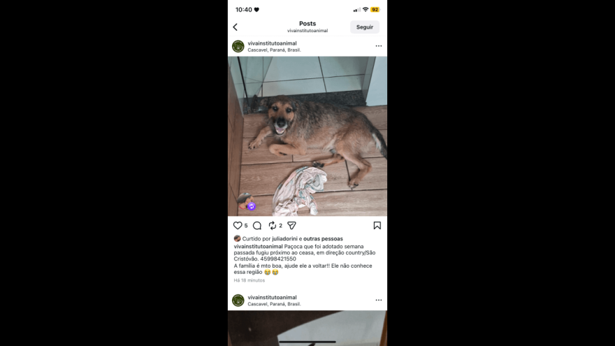 Quem encontrar ou tiver informações, pode entrar em contato com o número (45) 99842-1550....
