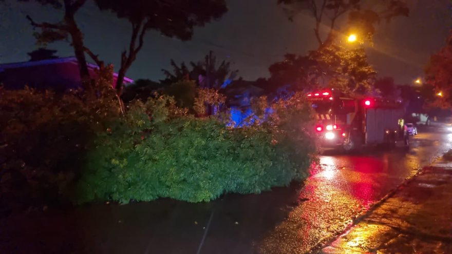 Militares do Corpo de Bombeiros foram chamados na noite desta segunda-feira (8) para fazer um corte de árvore no Bairro XIV de Novembro, em Cascavel.