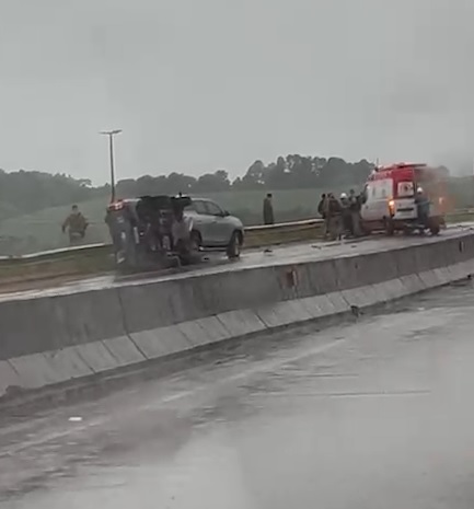 Viatura capota ao seguir em comboio pela BR-369 em Corbélia
