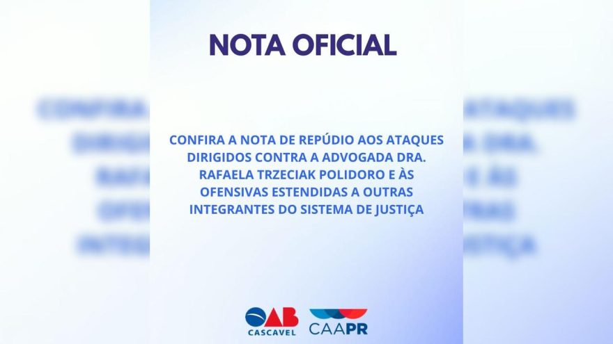 Na primeira nota, a OAB Subseção de Cascavel repudiou os ataques dirigidos à advogada Rafaela Trzeciak Polidoro (OAB/PR 103.381), afirmando que as ações ocorreram durante o exercício regular da advocacia. De acordo com a entidade, os fatos revelam um padrão sistemático de perseguição e tentativa de deslegitimação da atuação profissional, com acusações falsas, imputação indevida de crimes, uso de documentos supostamente forjados e exposição pública em plataformas digitais.