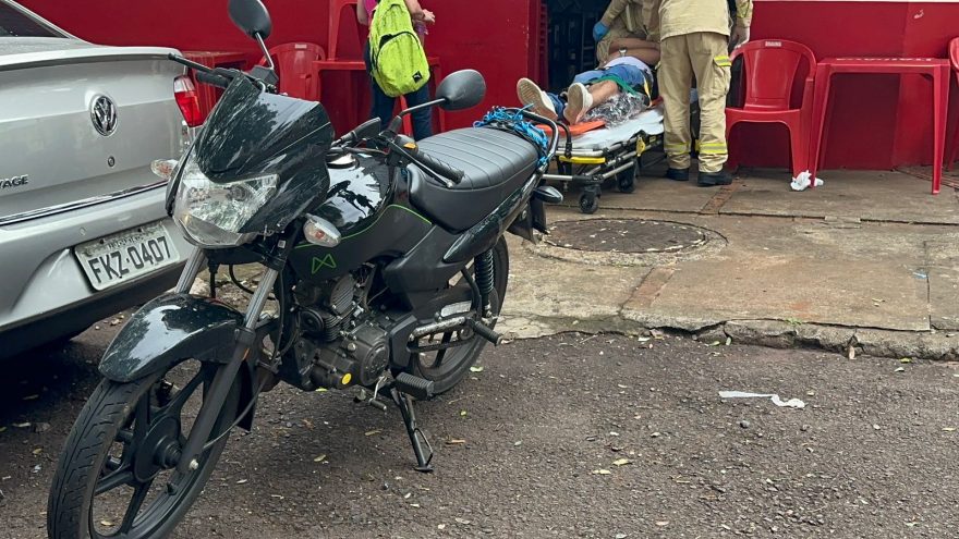 Um jovem de 21 anos ficou ferido, na manhã deste sábado (13), em uma queda de moto na esquina entre as ruas Recife e Castro Alves, no Centro de Cascavel.