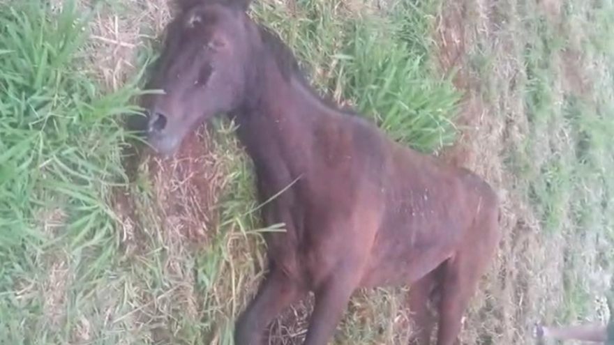 Um cavalo encontrado em um estado extremamente grave em um terreno baldio localizado na Rua Walter Linzmayer, esquina com a Rua Guilherme Piovesan, no bairro Brasmadeira, em Cascavel, na tarde deste domingo (14), permanece na mesma situação.