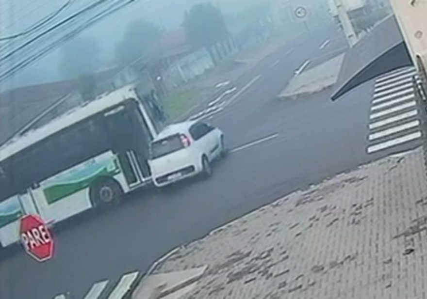 Vídeo mostra carro atravessando preferencial e sendo atingido por ônibus