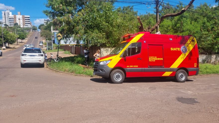 Na tarde desta quinta-feira (18) um ciclista ficou ferido após um acidente de trânsito na Rua Vitória esquina com a Rua Nereu Ramos, no Bairro Neva, em Cascavel.