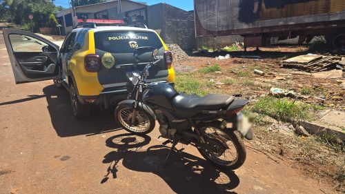 Uma motocicleta furtada foi recuperada pela Polícia Militar nesta sexta-feira (19), no Bairro Brasília.
