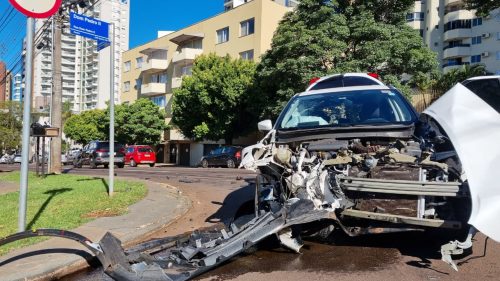 Acidente entre Kicks e Taos deixa trânsito lento no Centro de Cascavel