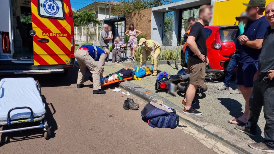 Motociclista quebra a perna após acidente com carro no bairro Pioneiros Catarinenses, em Cascavel