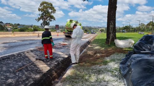 Equipes especializadas atuam no local realizando a remoção e a descontaminação da via. Os trabalhos devem se estender até o fim da tarde, sem previsão exata para a liberação total do trecho.