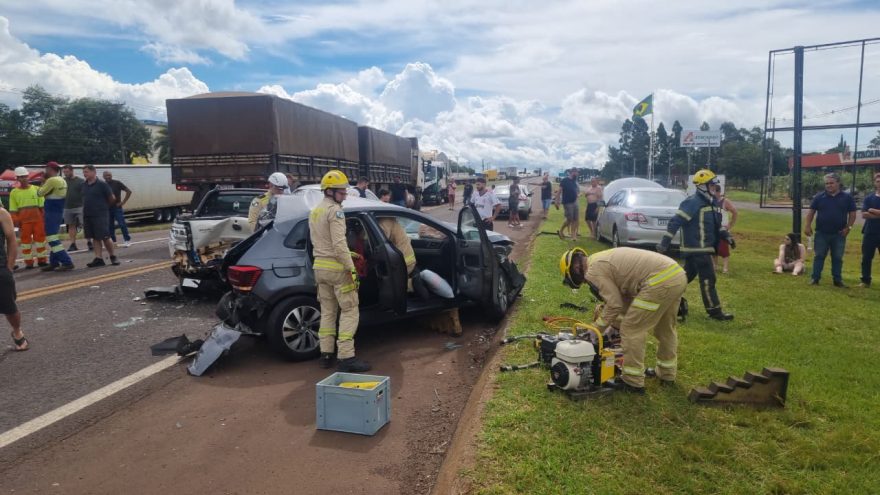 Com a gravidade do acidente, equipes do Corpo de Bombeiros foram acionadas e realizam trabalhos de desencarceramento de vítimas presas às ferragens no Polo. O trânsito ficou lento no trecho, com parte da rodovia interditada para atendimento da ocorrência e segurança dos envolvidos.