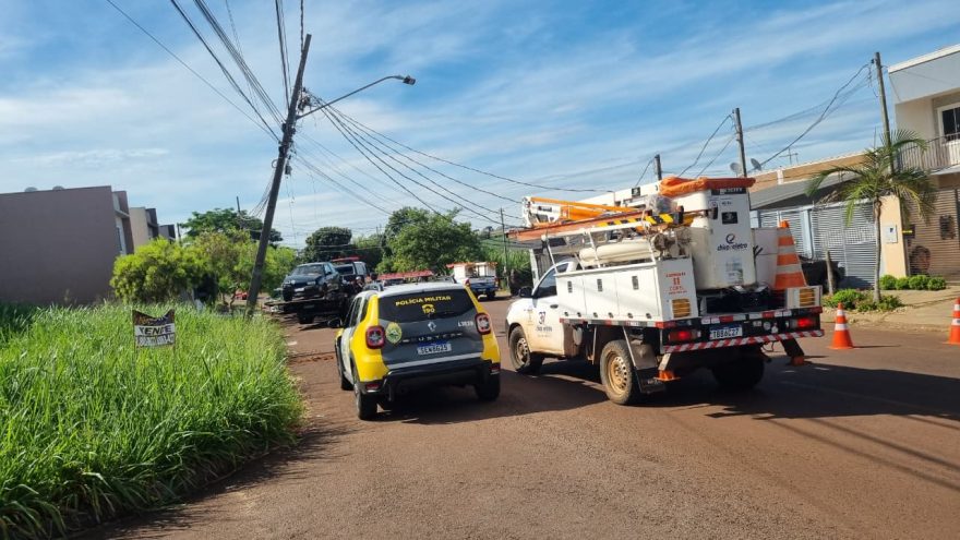 Um acidente de trânsito foi registrado na manhã desta sexta-feira (26) no cruzamento da Rua Tupinambás com a Rua Espinélio, no bairro Esmeralda em Cascavel. Um Volkswagen Gol acabou batendo contra um poste após o condutor supostamente tentar desviar de uma motocicleta, segundo relatos.