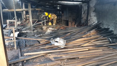 Fogo começou em barracão nos fundos da loja onde havia madeiras e equipamentos; ninguém ficou ferido...