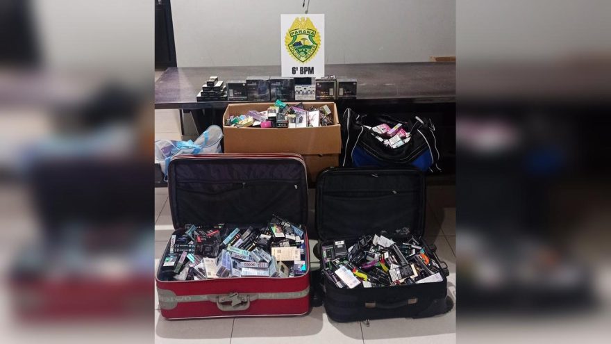 Uma ação da Polícia Militar resultou na apreensão de uma grande quantidade de cigarros eletrônicos contrabandeados na noite deste sábado (28), em Cascavel.