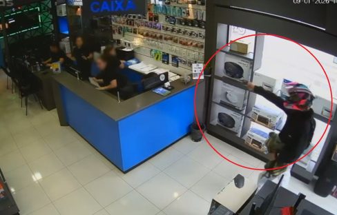 No vídeo, é possível ver quando os dois entram no estabelecimento com uma arma em punho, assustando funcionários e clientes. De forma agressiva e sob ameaças, eles ordenam que as vítimas entreguem os produtos expostos no local. Durante a ação, diversos aparelhos celulares foram roubados.